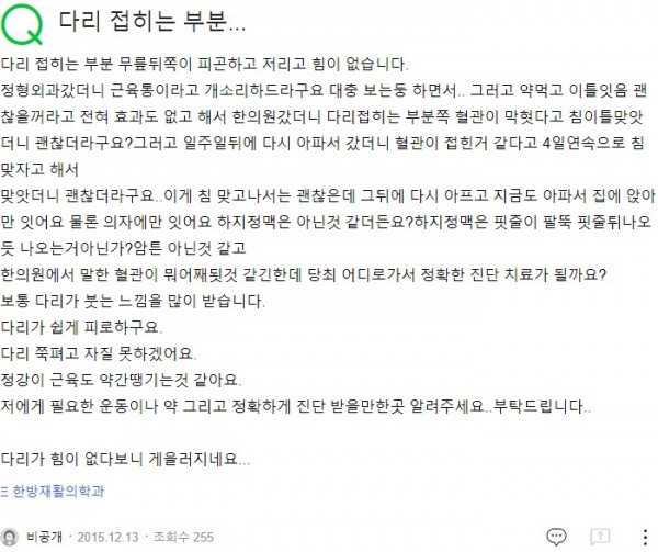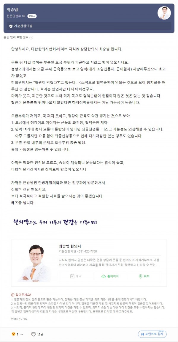 Q. 다리 접히는 부분... 페이지 정보 작성자 기운찬한의원 작성일23-09-07 16:05 조회1,740회 댓글0건 관련링크 이전글 다음글 목록 본문 [최승범 원장님의 네이버 지식in 답변입니다] 댓글목록 등록된 댓글이 없습니다. 이전글 다음글 목록