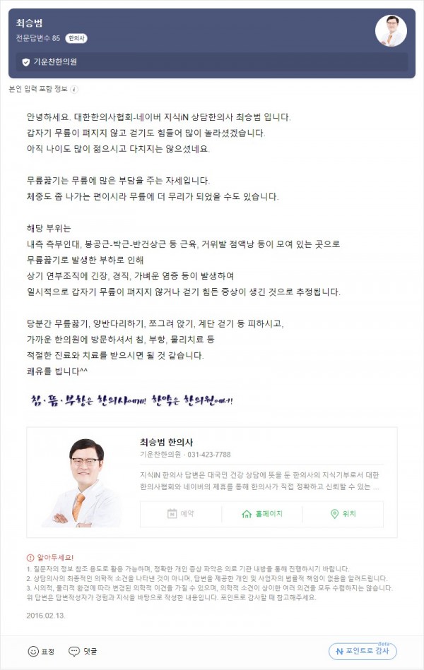Q. 무릎이 안펴져요 페이지 정보 작성자 기운찬한의원 작성일23-09-11 13:35 조회1,627회 댓글0건 관련링크 이전글 다음글 목록 본문 [최승범 원장님의 네이버 지식in 답변입니다] 댓글목록 등록된 댓글이 없습니다. 이전글 다음글 목록