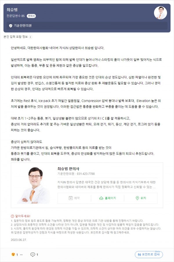 Q. 발목염좌로 늘어닌 인대 다시 타이트하게돌아가지 않나요? 페이지 정보 작성자 기운찬한의원 작성일23-09-15 09:47 조회1,736회 댓글0건 관련링크 이전글 다음글 목록 본문 [최승범 원장님의 네이버 지식in 답변입니다] 댓글목록 등록된 댓글이 없습니다. 이전글 다음글 목록