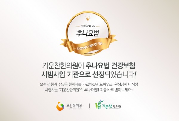 평촌 기운찬한의원이 추나요법 건강보험 시범사업 기관으로 선정되었습니다.